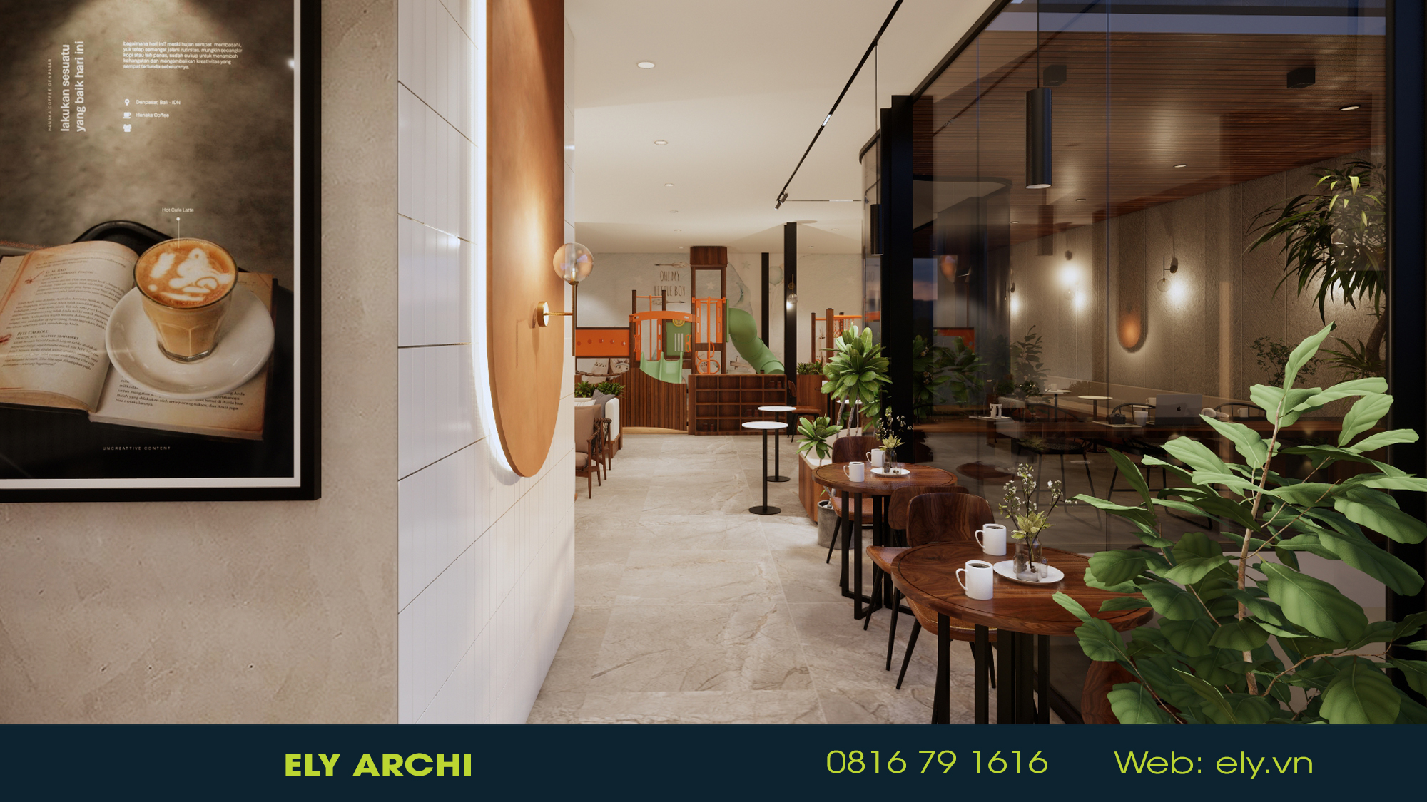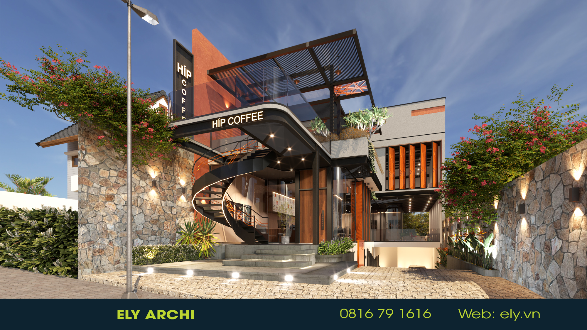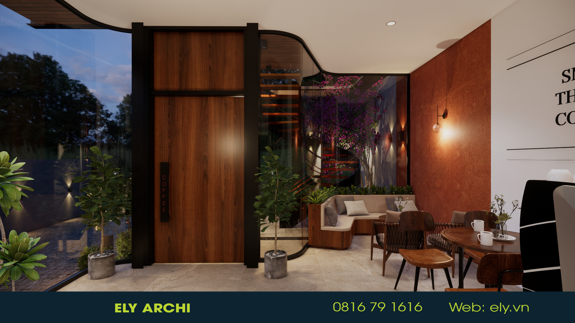 Vật liệu địa phương – đất nung, đá bazan, gỗ mộc – được sử dụng như những nốt nhạc trầm ấm, kể câu chuyện về vùng đất đỏ bazan và những bàn tay người trồng cà phê. Mọi đường cong, mái vòm, và ánh sáng đều hướng đến cảm giác ấm – chậm – sâu, nơi con người có thể ngồi xuống, nghe tiếng gió và cảm nhận hương cà phê như nghe một bản nhạc của đất.