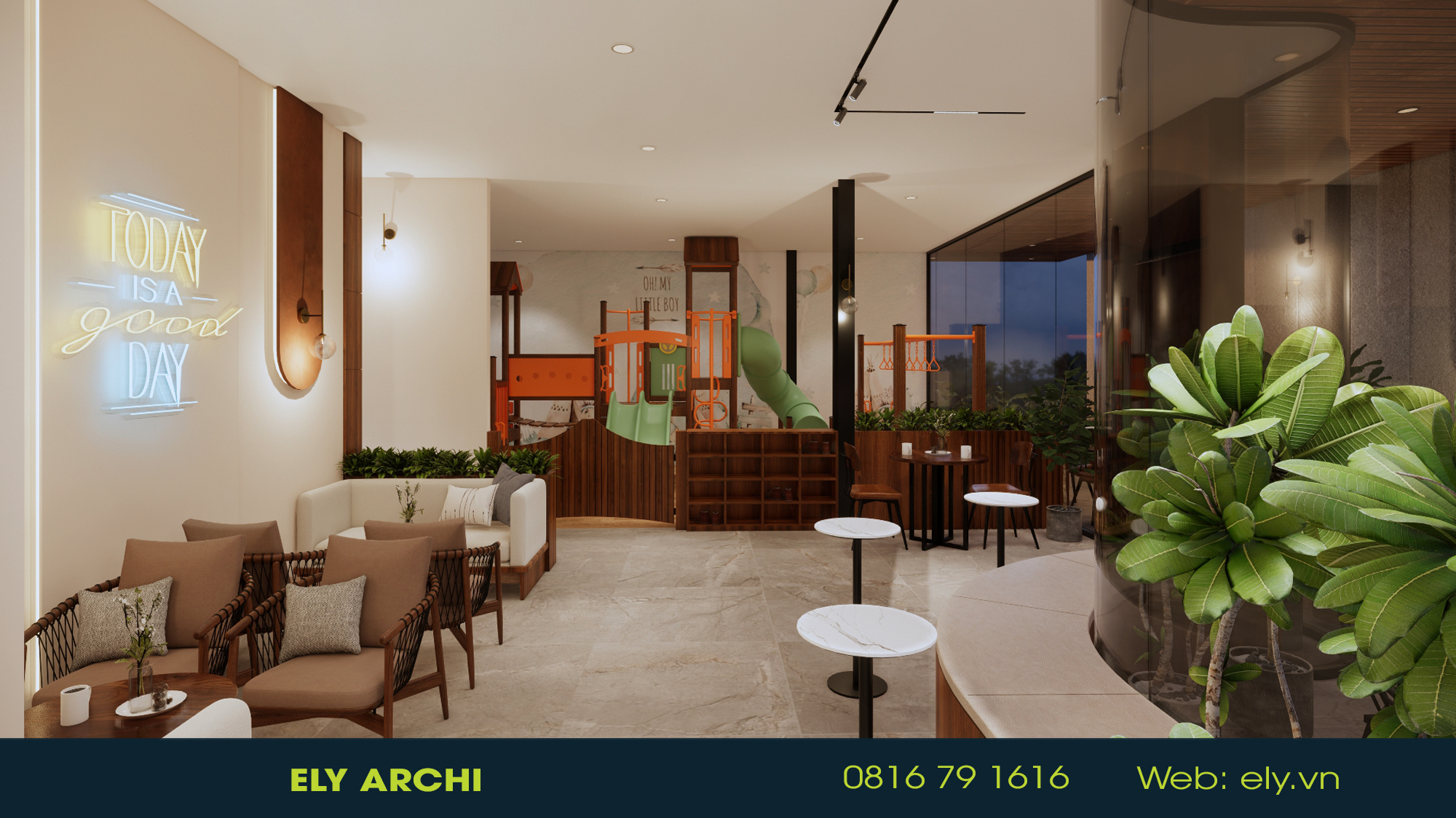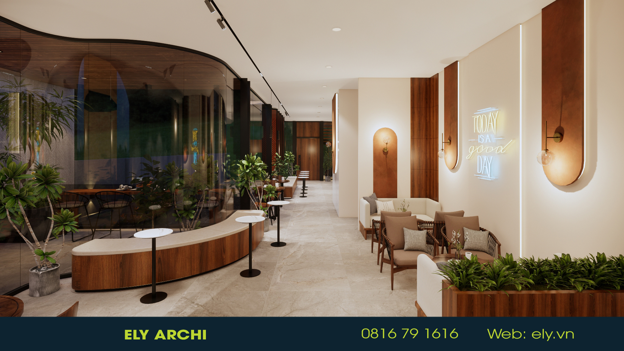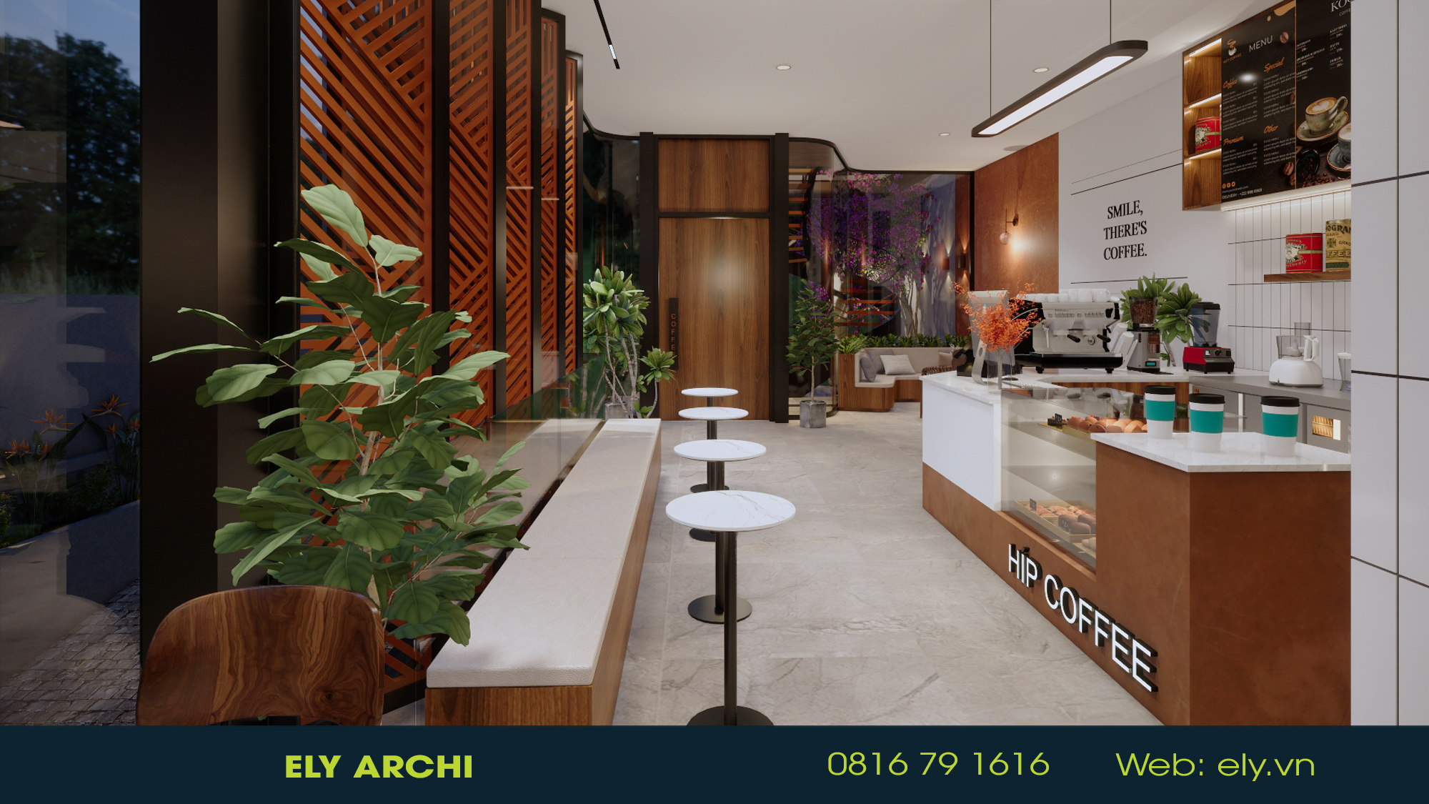 Vật liệu địa phương – đất nung, đá bazan, gỗ mộc – được sử dụng như những nốt nhạc trầm ấm, kể câu chuyện về vùng đất đỏ bazan và những bàn tay người trồng cà phê. Mọi đường cong, mái vòm, và ánh sáng đều hướng đến cảm giác ấm – chậm – sâu, nơi con người có thể ngồi xuống, nghe tiếng gió và cảm nhận hương cà phê như nghe một bản nhạc của đất.